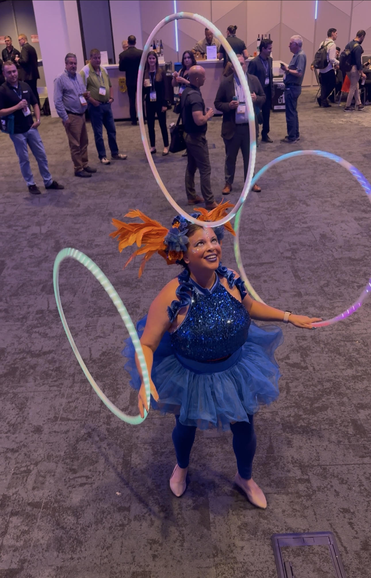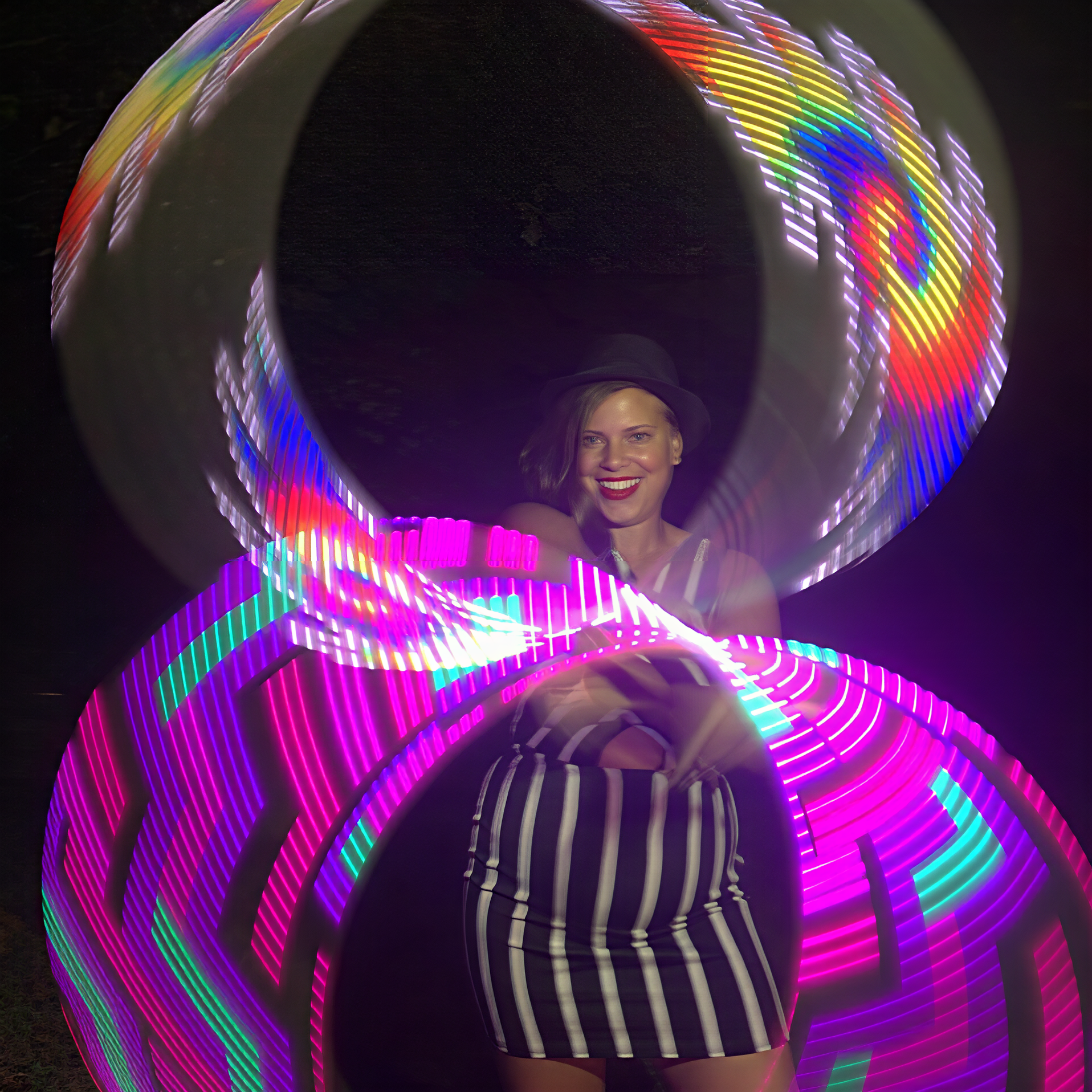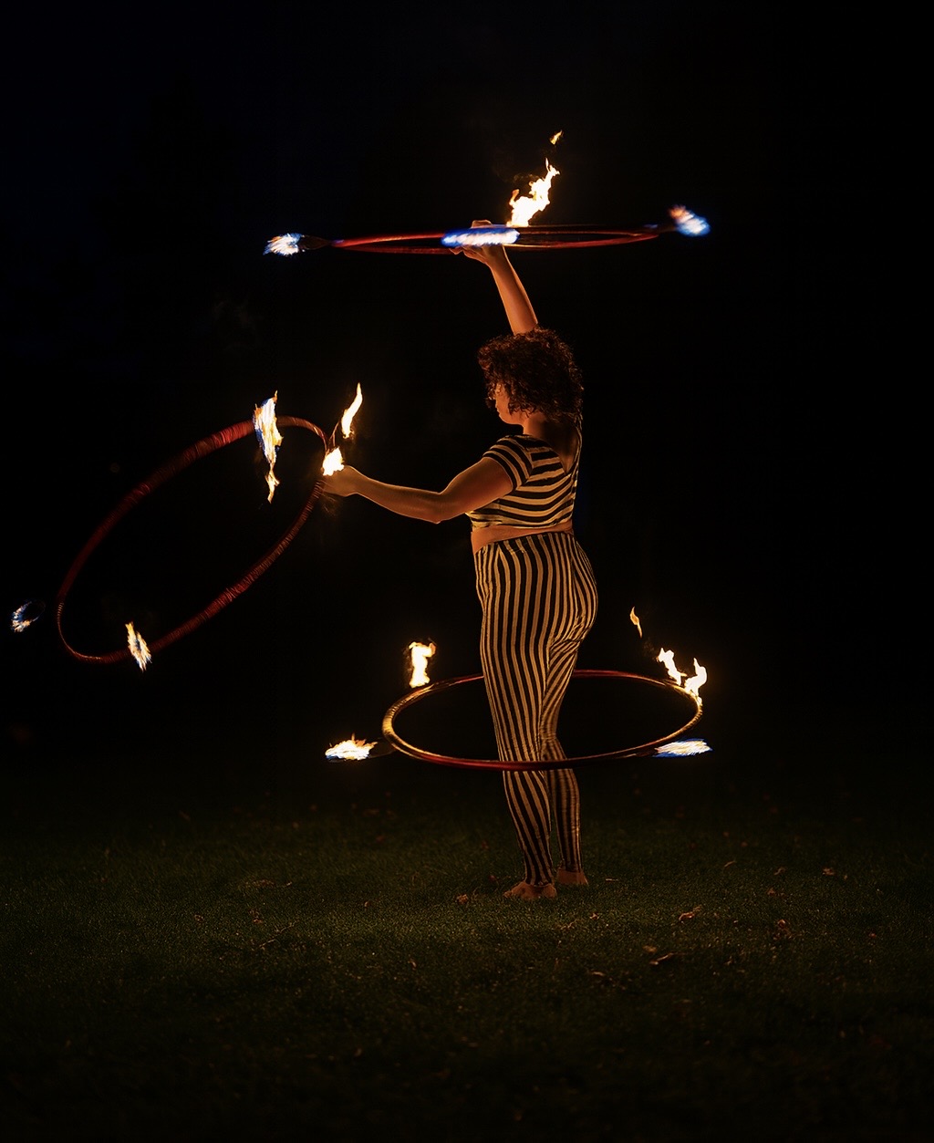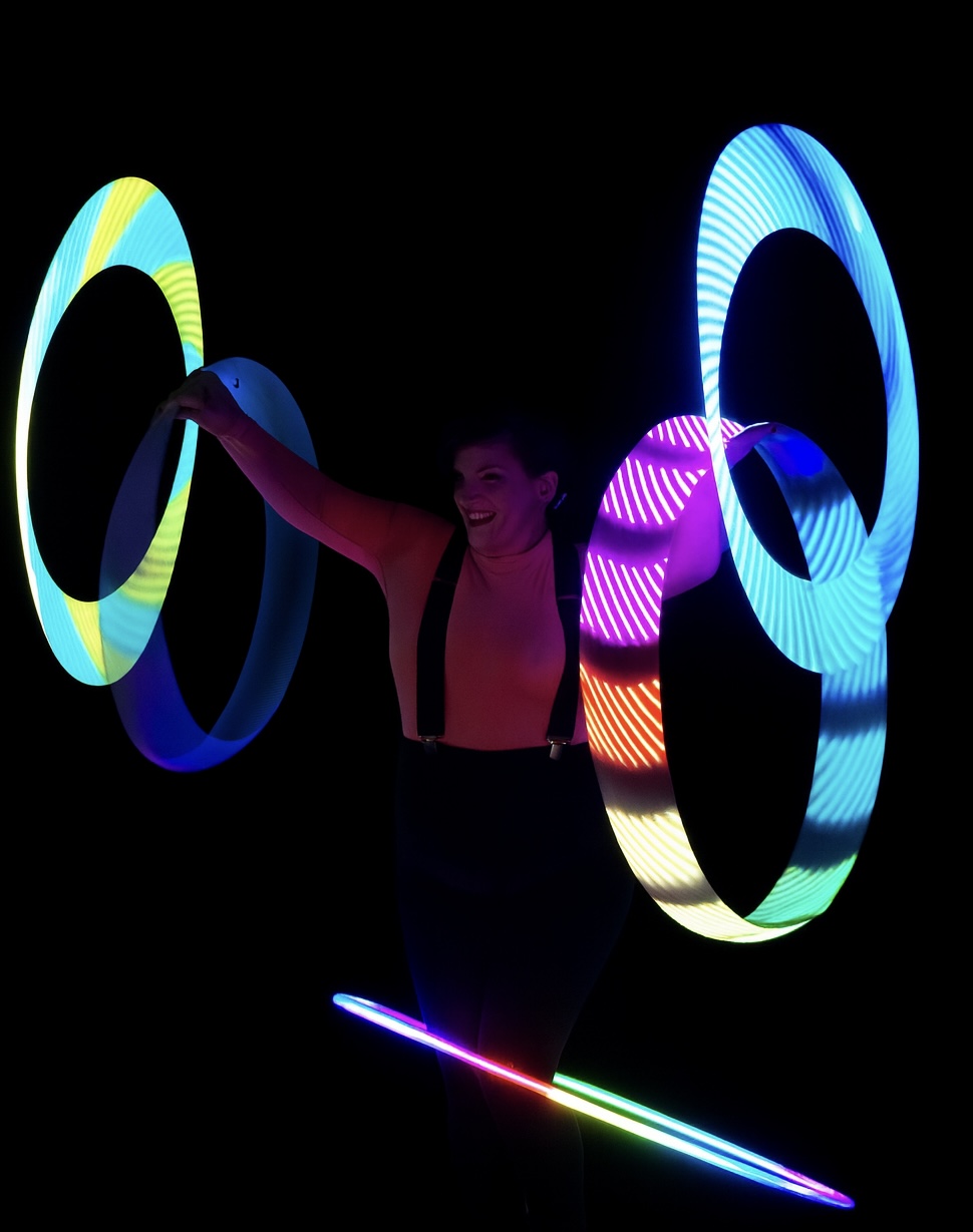 Kate Starks is a visual performing artist based in Northeast Ohio. She specializes in juggling, hula hoop dance, and other variety acts. For over a decade, she has lit up stages and special events with the mesmerizing power of fire, LED lights, and an eclectic array of props.